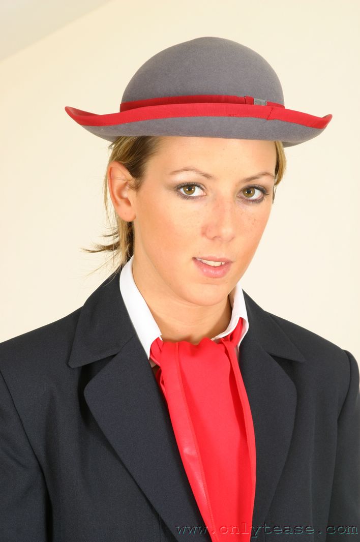 Gorgeous mistress in leather gear complete with thigh high boots and crop shows off her goods