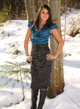 Black-stockinged milf Shalina Devine warms herself with a vibe in cold winter