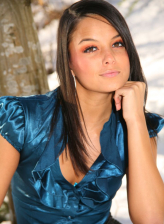 Colombian redhead Veronica Leal in white lingerie and stockings spreads her pussy