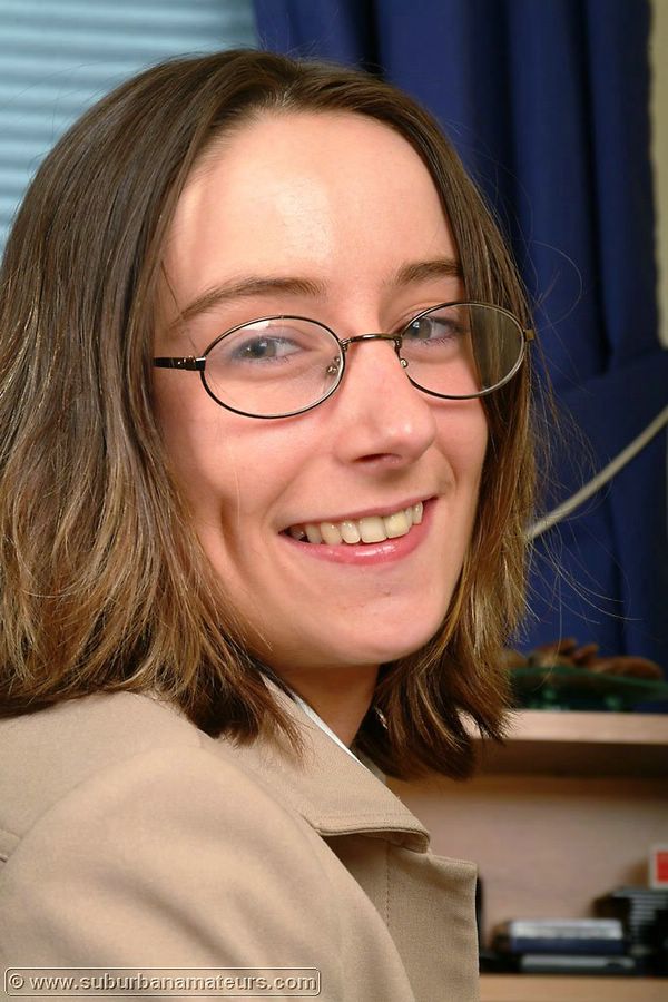 suburban amateurs Real UK Amateurs Secretary wearing glasses and stockings plays with dildo