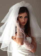 Sexy babe Little Caprice strips her wedding gown to show white bridal stockings