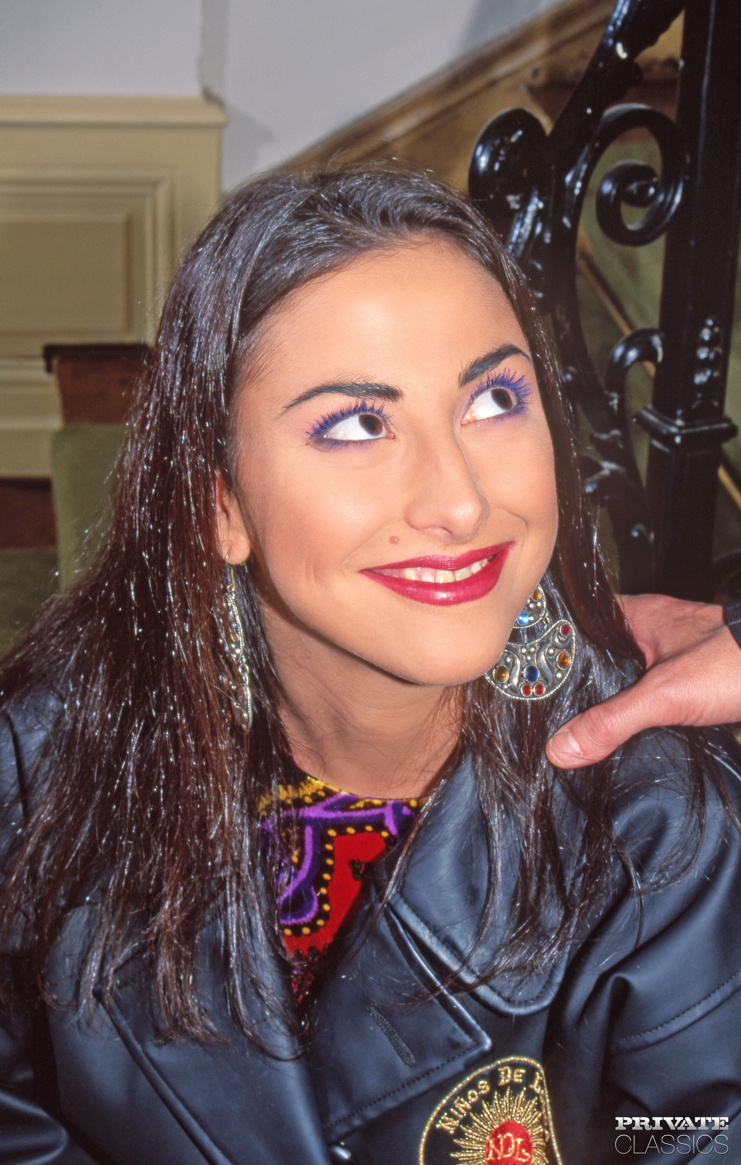 Carla Dori opens legs in retro lace top stockings for FMM DP at the hotel