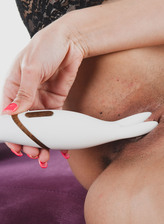 Ginger Italian Dana Santo test drives pink sex toys wearing a black bra & nylons
