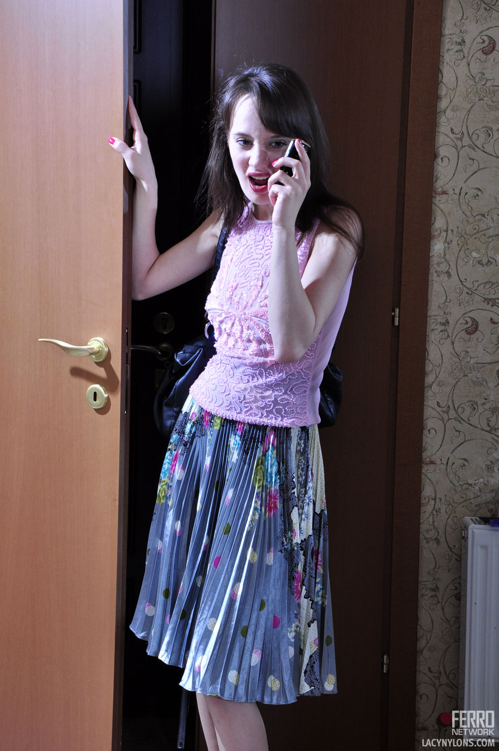 Naughty sec Katie Kay strips to her lacy vintage corset and ff stockings
